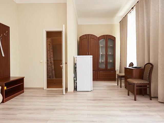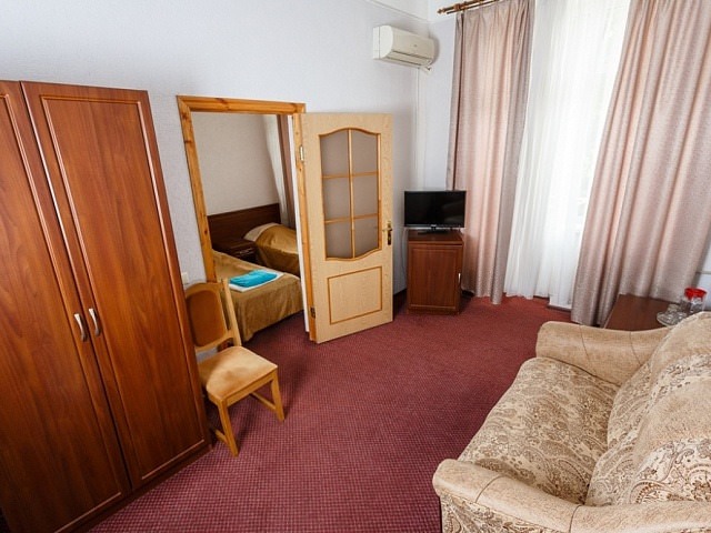 Комфортабельный двухместный 2-х комнатный номер со всеми удобствами с балконом: гостиная с мягкой мебелью, оборудован двумя раздельными или одной двуспальной кроватью.